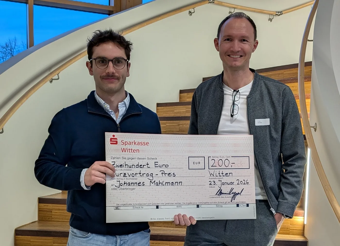 🧑🏫 Vortrag: Auswahl von Outcomes und Messverfahren in Studien zu Digital Therapeutics (Johannes) und es gab sogar den🏆 für den besten Vortrag.