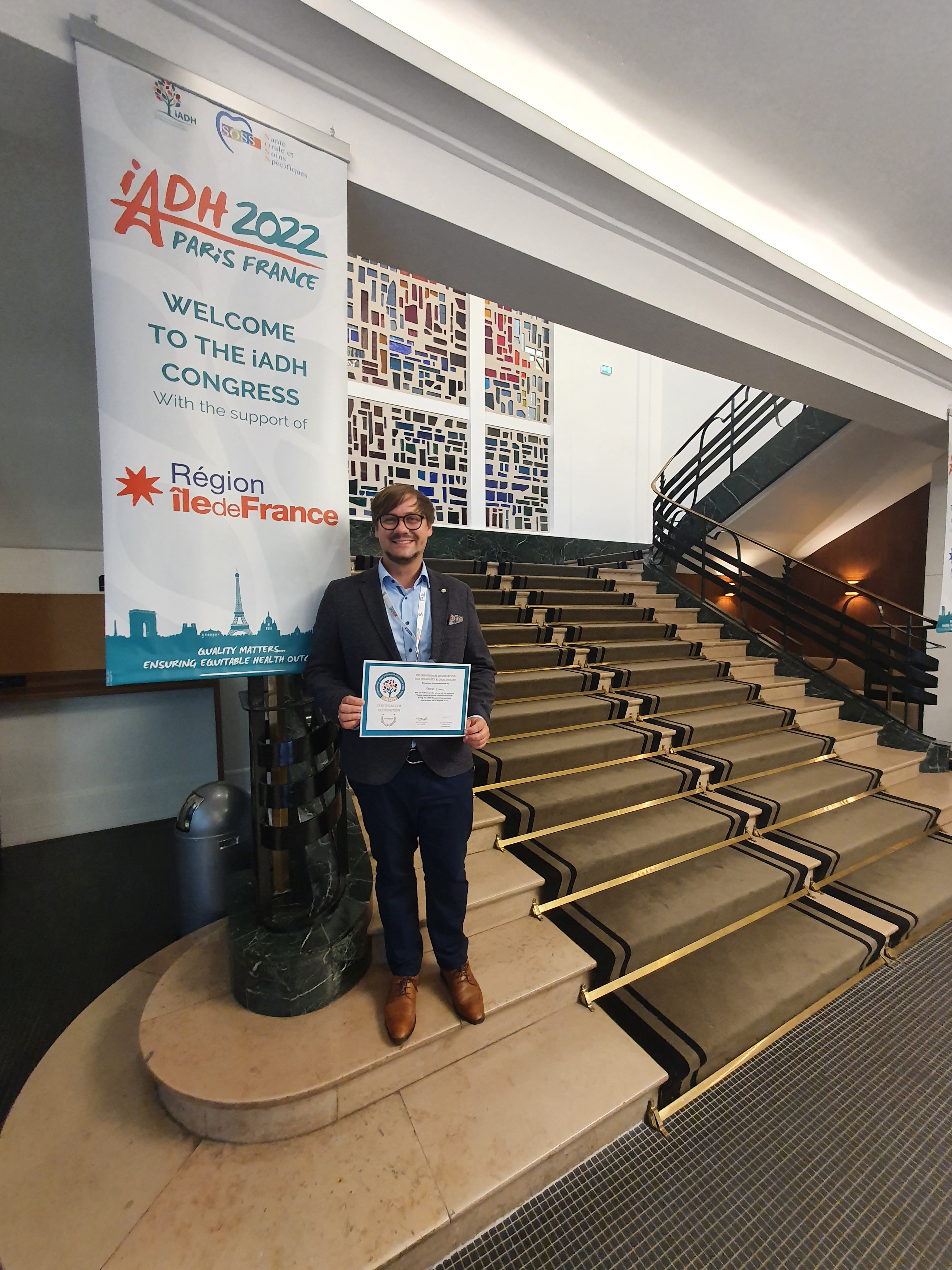 Für seine wissenschaftliche Präsentation zur Karieserfahrung bei deutschen Special-Olympics-Athleten und -Athletinnen im jungen Erwachsenenalter wurde Dr. Peter Schmidt, Oberarzt am Lehrstuhl für Behindertenorientierte Zahnmedizin an der Universität Witten/Herdecke (UW/H), in der Kategorie „Public Health/Clinical Research“ mit dem iADH Research Award 2022 in Paris ausgezeichnet. Die iADH (International Association of Disability and Oral Health) ist eine global agierende wissenschaftliche Organisation zur Förderung der Mundgesundheit von Menschen mit Behinderung und hat mehr als 8.000 Mitglieder. Dr. Peter Schmidt holt die Auszeichnung damit erstmals nach Deutschland.