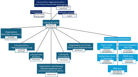 Die Arbeitsgemeinschaft Sonographie wurde 2020 gegründet. Sie ist angegliedert an den Lehrstuhl für Allgemeinmedizin I unter der Leitung von Prof. Dr. Klaus Weckbecker. Die interne Organisation der AG findet ausschließlich studentisch statt. Das aktive Tutor:innen-Team besteht jedes Semester aus circa 15 Studierenden.