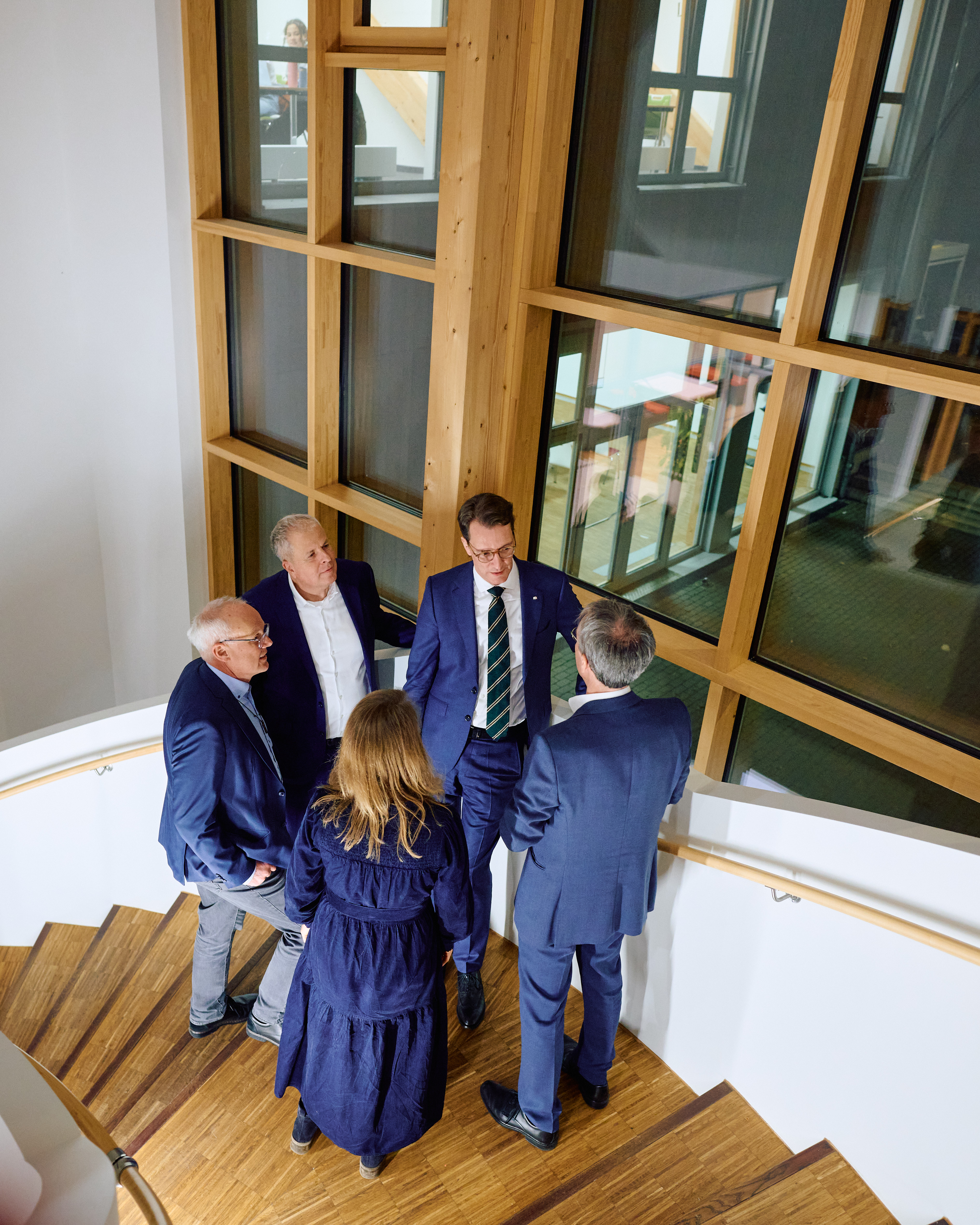 Bei einer anschließenden Führung durch das 2021 eröffnete Gebäude in Holz-Hybridbauweise, einem der nachhaltigsten Hochschulgebäude Deutschlands, wurde außerdem der Anspruch der UW/H deutlich, ökologische Verantwortung und zukunftsweisende Infrastruktur zusammenzubringen. Der Bau und die weiteren Maßnahmen der Universität im Bereich Nachhaltigkeit können beispielhaft zeigen, wie in Nordrhein-Westfalen bis 2035 Klimaneutralität erzielt werden kann – so, wie es im Koalitionsvertrag der Landesregierung vereinbart wurde.