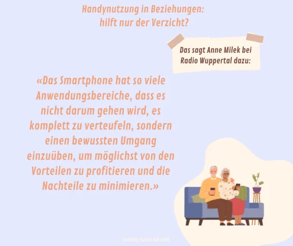 Prof. Anne Milek war bei Radio Wuppertal zu Gast, um dort über das Konfliktpotential von Handynutzung in Beziehungen zu informieren.