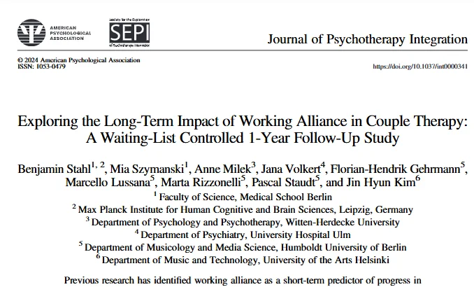 Prof. Anne Milek hat gemeinsam mit Prof. Benjamin Stahl von der MSB Berlin und vielen weiteren an einem spannenden Projekt zur Langzeitwirkung der Therapiebeziehung zwischen Klient:innen und Therapeut:in bei Paartherapie geforscht. Hier gelangen Sie zum Artikel: