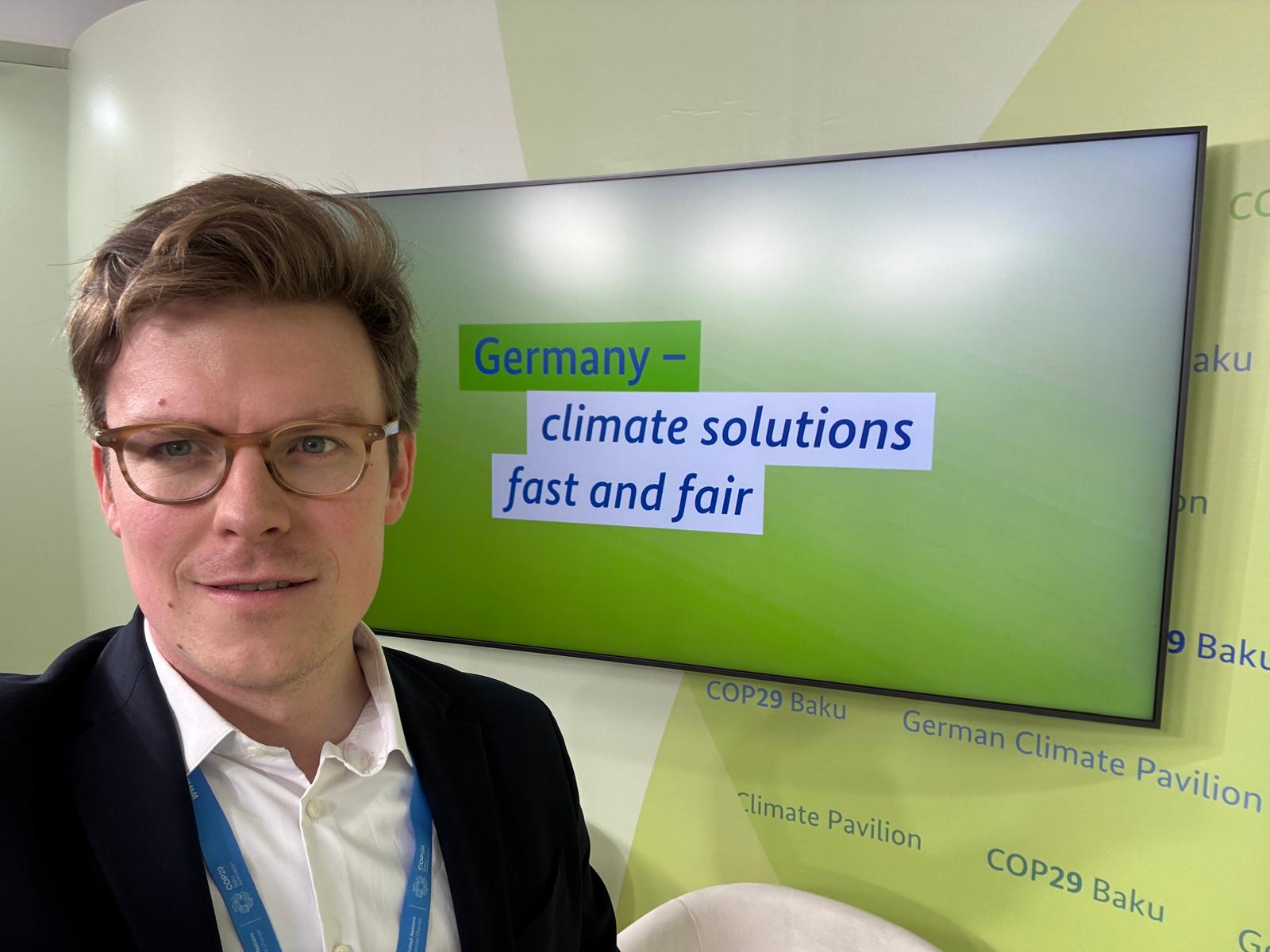 Max Matthey von der UW/H präsentiert auf der COP29 ein neues Konzept, wie Klimaschutzprojekte in Entwicklungsländern gezielt gefördert und finanzielle Mittel effizienter eingesetzt werden können.