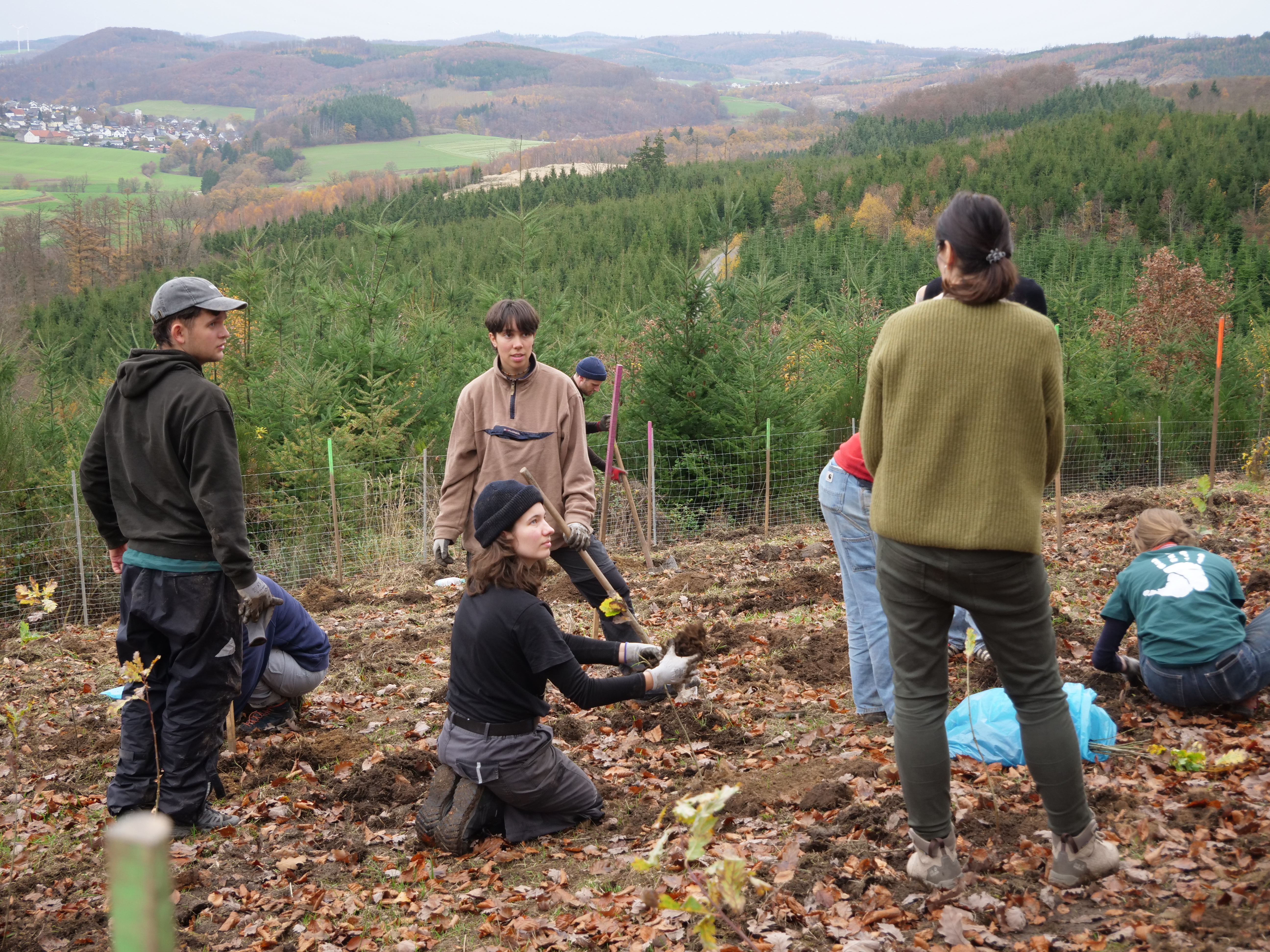 Zusätzlich haben sich Universitätsangehörige für lokalen Klimaschutz engagiert: Studierende, Mitarbeitende und Auszubildende haben zusammen mit dem Bergwaldprojekt – einem Verein, der sich bundesweit für die Erhaltung und die Wiederherstellung von Ökosystemen einsetzt – 700 Traubeneichen in Neuenrade im Sauerland gepflanzt. Dr. Dirk Jakobs, Vizepräsident für Organisationsentwicklung, betont: „Uns ist es wichtig, es nicht bei der Kompensation zu belassen, sondern unserem Auftrag als Bildungseinrichtung gerecht zu werden. Wir wollen für die Auswirkungen des Klimawandels in unserer Region sensibilisieren, aktive Beteiligung leben sowie Selbstwirksamkeit und Handlungsfähigkeit im Sinne einer Bildung für nachhaltige Entwicklung stärken.“