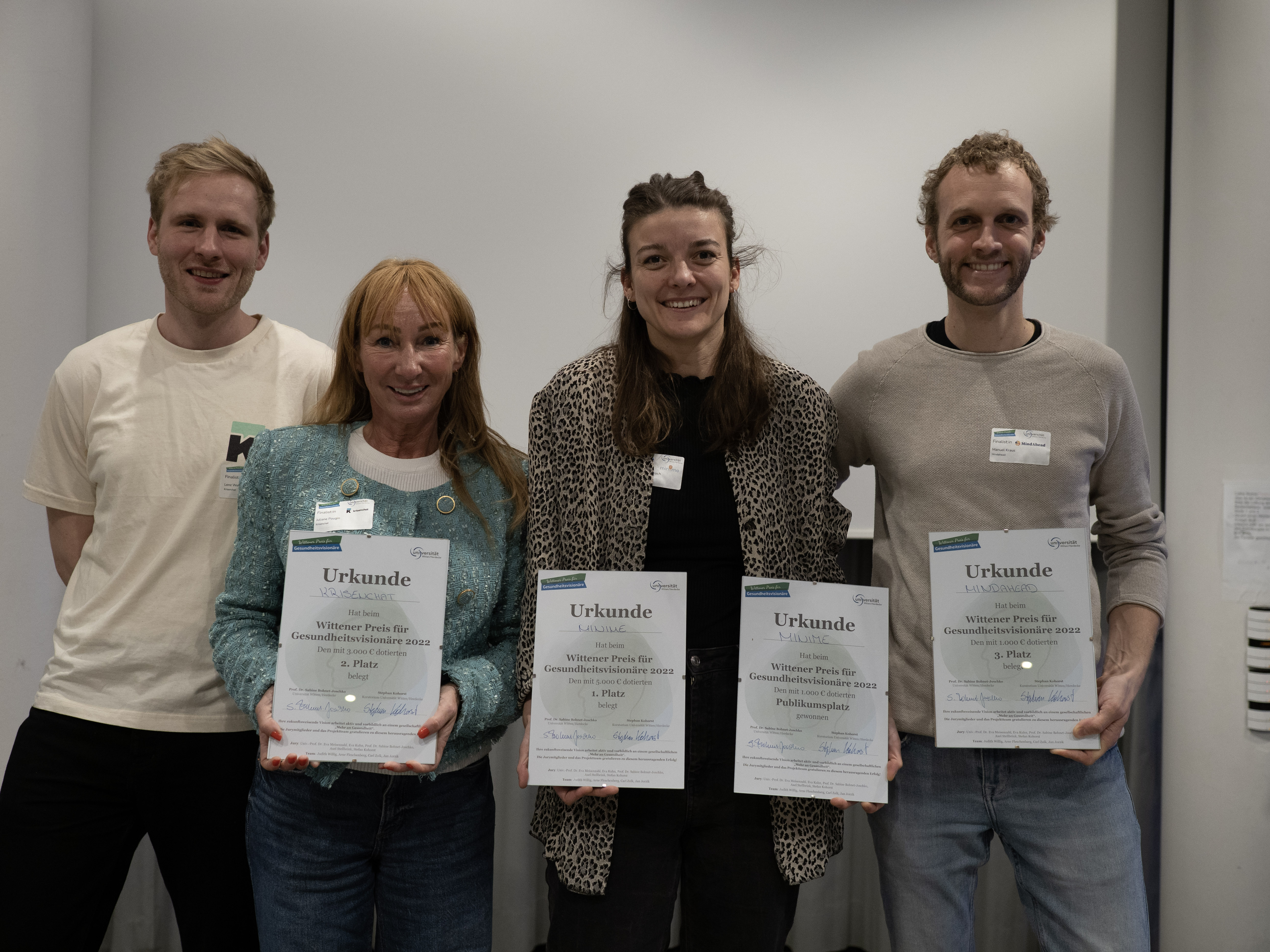 Unter dem Motto „Start-Up Mental Health – Let’s be open MINDed“ wurden beim diesjährigen Wittener Preis für Gesundheitsvisionäre an der Universität Witten/Herdecke (UW/H) Start-ups ausgezeichnet, die Lösungen rund um psychische Gesundheit, Prävention und Unterstützung therapeutischer Maßnahmen entwickeln. Sechs Finalisten präsentierten ihre Ideen vor einem interessierten Publikum und einer Expertenjury. Am Ende konnten drei Start-ups besonders überzeugen.